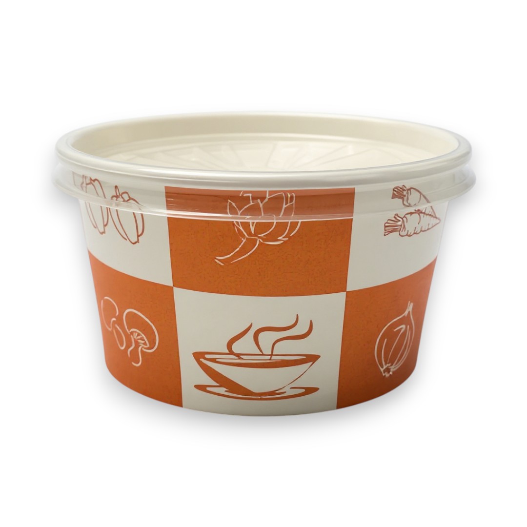 În concluzie, Bol Carton Supa Portocaliu + Capac Transparent 14 oz este o opțiune practică, estetică și convenabilă pentru servirea, depozitarea și transportul supelor, ciorbelor etc.