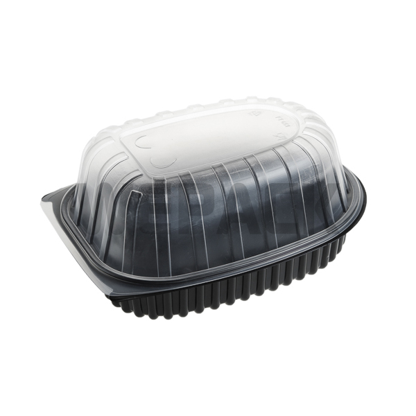 Capacul transparent din PP ofera vizibilitate maxima asupra continutului, facilitand identificarea si prezentarea atractiva a puiului sau a pestelui intreg. De asemenea, asigura o inchidere etansa, pastrand astfel prospetimea si calitatea alimentelor in timpul transportului sau depozitarii.