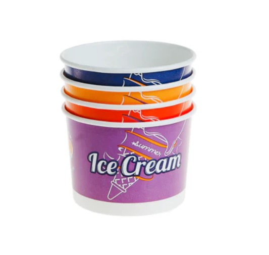 Cupa pentru inghetata, realizata din carton rezistent cu doua straturi de polietilena, design modern este disponibila pe 4 culori: rosu/ albastru/ portocaliu/ mov. Cupa este rezistenta la temperaturi joase -40°C pana la temperaturi ridicate de +80°C.
