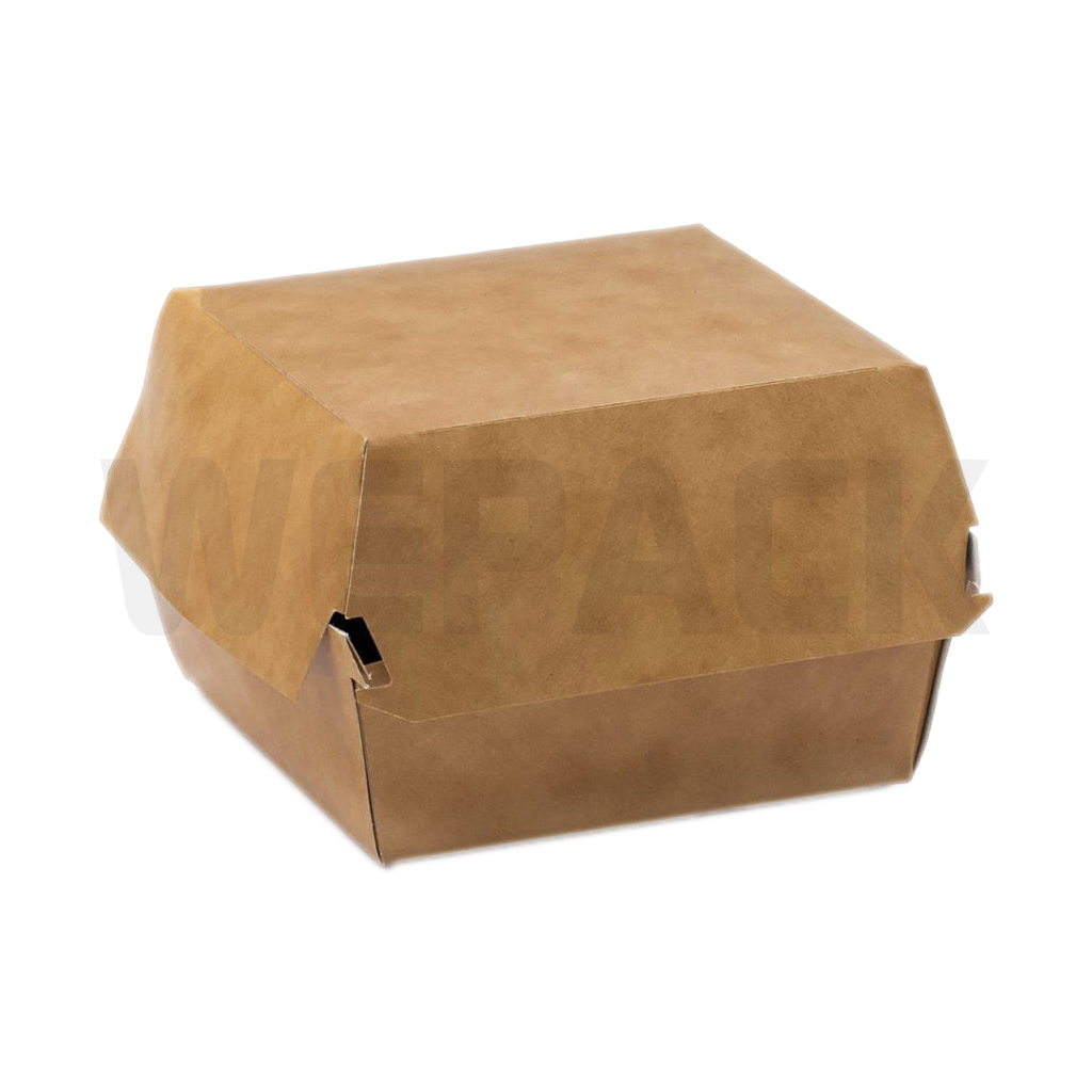 Cutie Kraft Hamburger Mic/Mare este un ambalaj practic și ecologic, confecționat din carton kraft rezistent.
