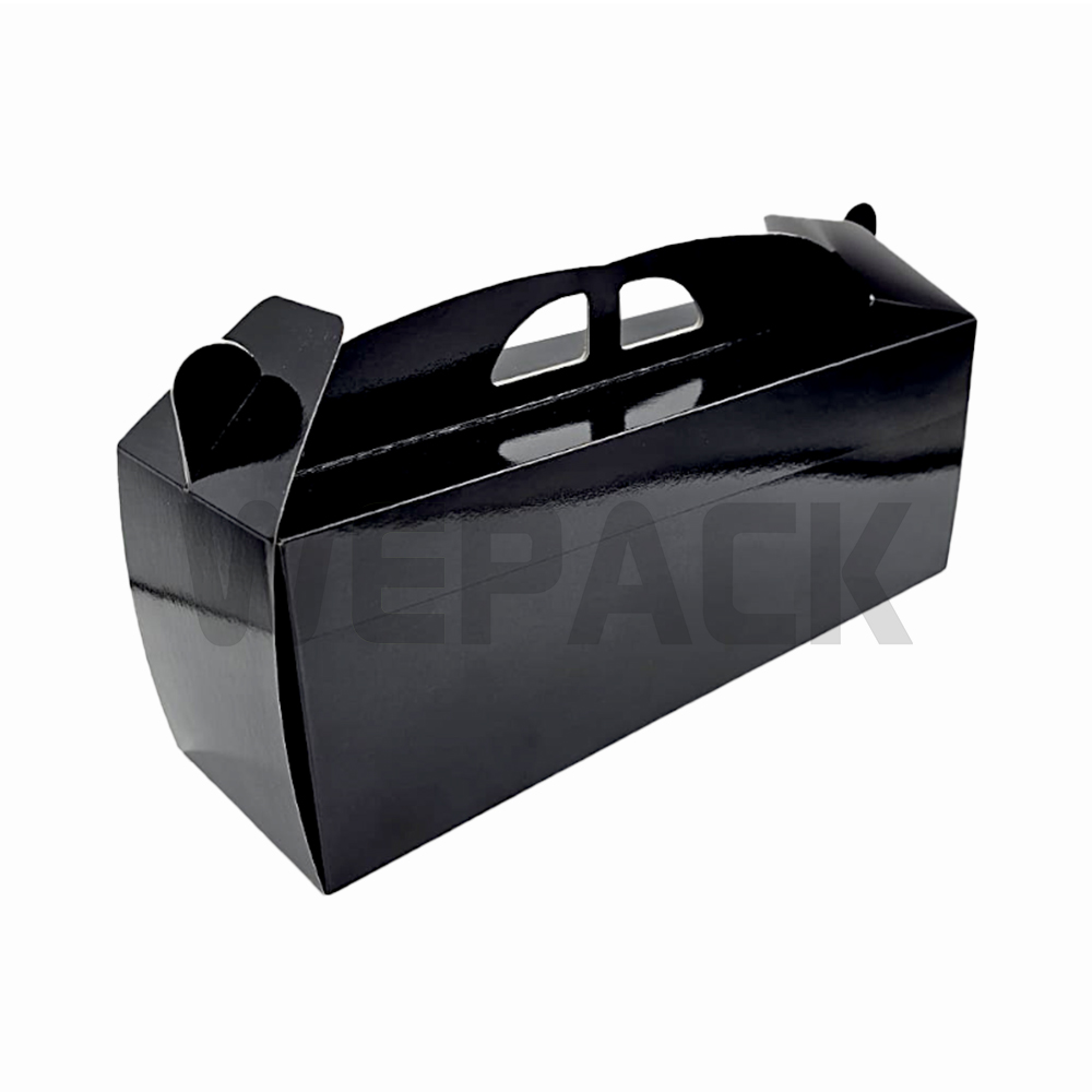 Cutii Tort Negre Carton Laminat Baton/ Holder cu maner sunt o soluție excelentă pentru a oferi un aspect rafinat deserturilor și pentru a le transporta în condiții optime, fiind ideale atât pentru uz casnic, cât și pentru evenimente speciale sau cofetării.