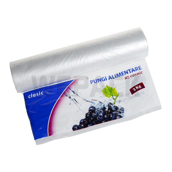 Pungile alimentare transparente Classic sunt ambalaje de plastic utilizate pentru ambalarea, stocarea si transportul alimentelor si altor produse intr-un mod igienic si vizibil. Aceste pungi sunt disponibile intr-o varietate de dimensiuni si grosimi, sunt usor de utilizat si sunt potrivite pentru diverse nevoi de ambalare.
