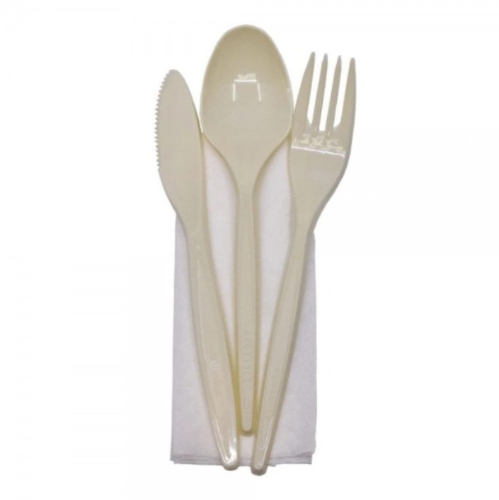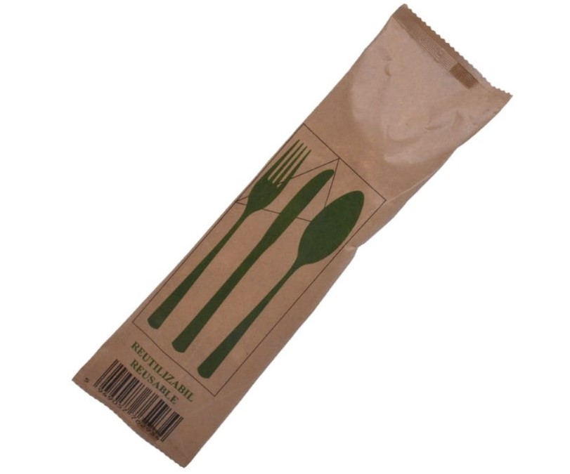Set Reutilizabil Furculita + Lingura + Cutit Crem Ambalat In Hartie
