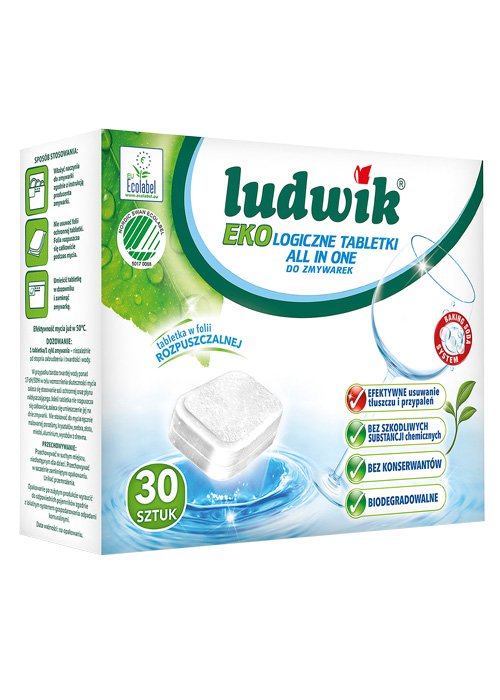 Tabletele Ludwik Eko ofera o curatare eficienta, indepartand cu usurinta reziduurile de alimente, grasimea si petele de pe vase si tacamuri.
